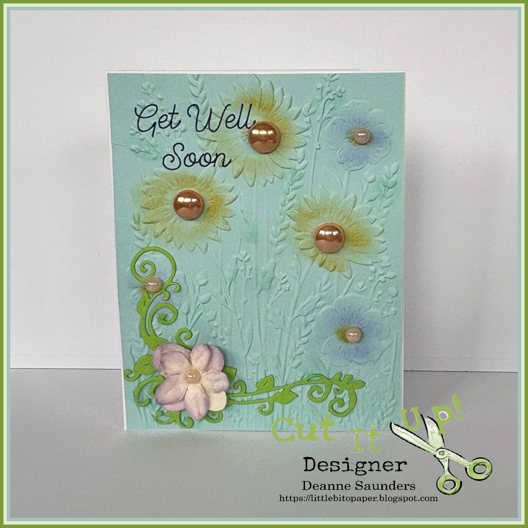 The new challenge at CUT IT UP is "anything goes as long as there is a diecut on it". Here's my project. I made a birthday card using a set of diecuts from Sizzix. I also used an embossing folder and distressing ink.